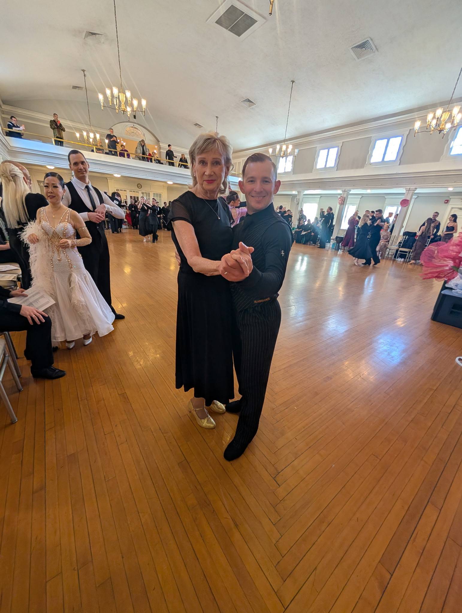 When I am dancing, I feel like I'm 25 years old, but the aches and pains I have today remind me that I am not. Dmitry and I performed fifteen dances; Waltz, Foxtrot, Viennese Waltz, Rhumba, Hustle, Salsa, Samba, Cha-cha, East Coast Swing, West Coast Swing, Tango, and Bolero; a few of the dances we did twice. Not bad for me at 68 years old!